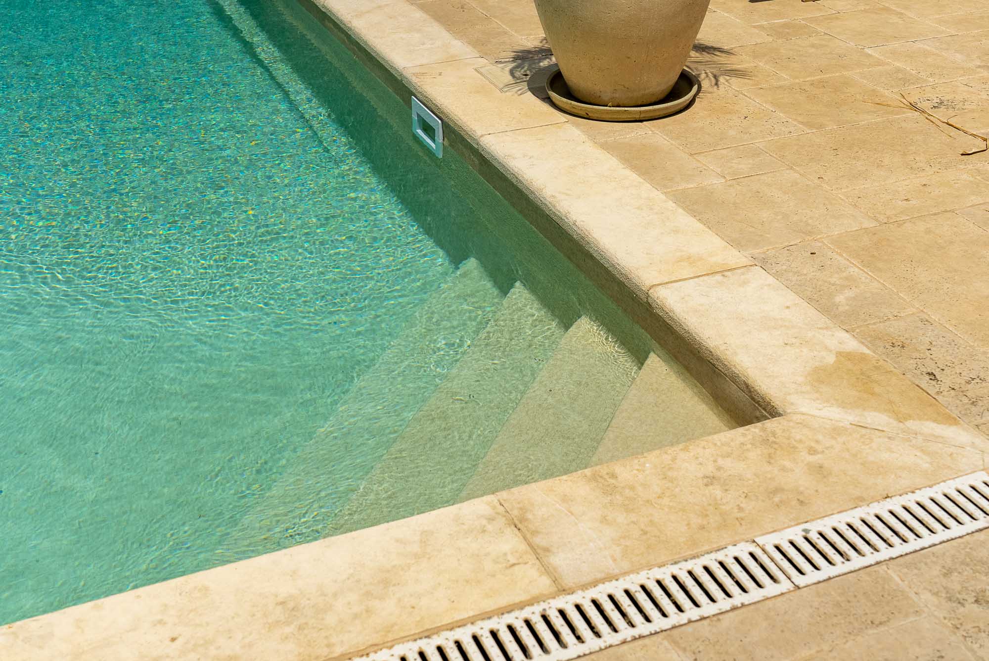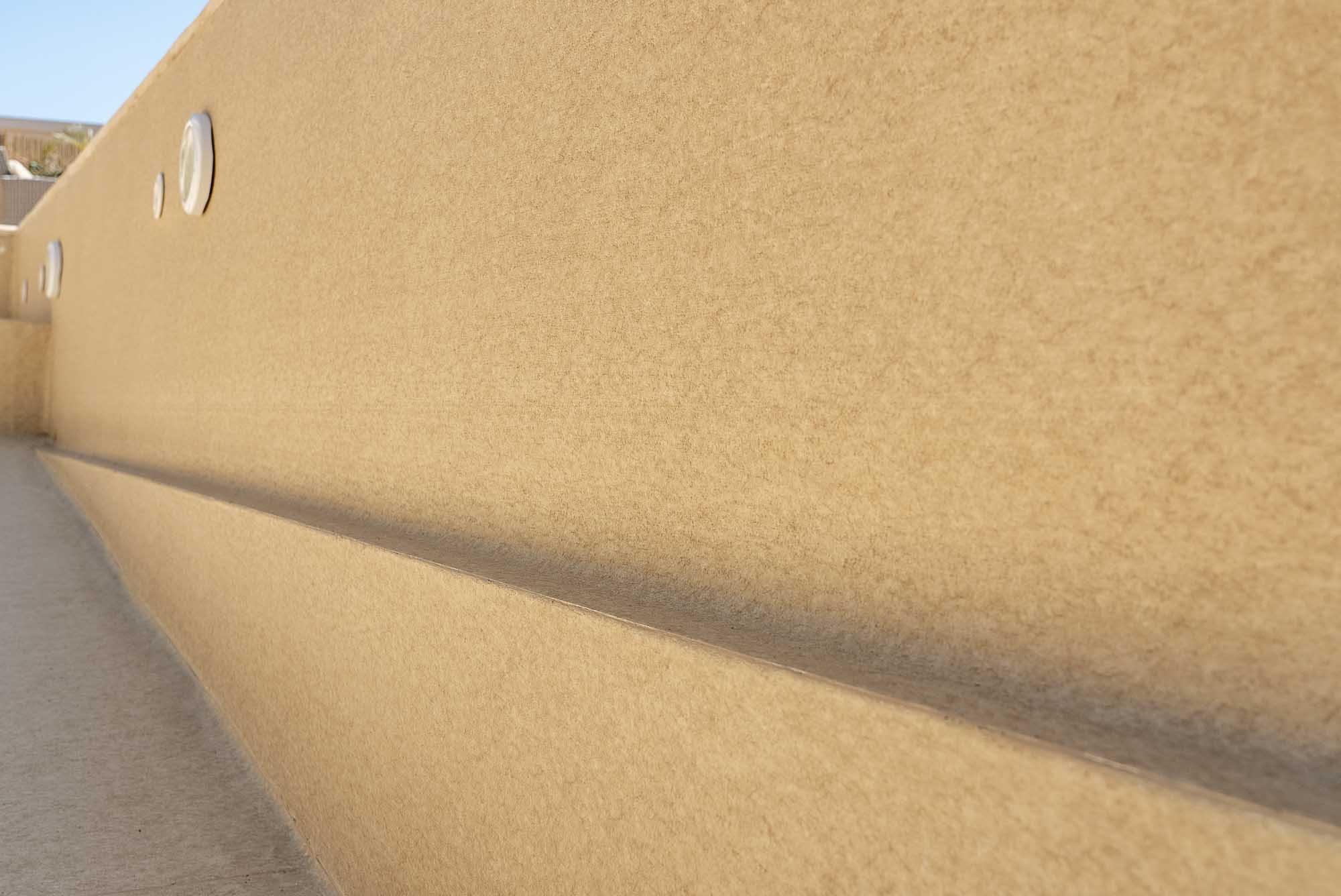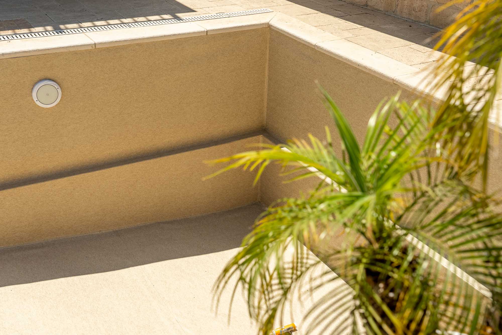 Stone Flex Sand. Revestimiento para piscina en acabado arena de playa y con textura 3D, es uno de los diseños top en ventas desde hace años. Piscina con acabado premium que garantiza la estanqueidad de tu piscina al 100% y ofrece una tonalidad de agua verde esmeralda…
